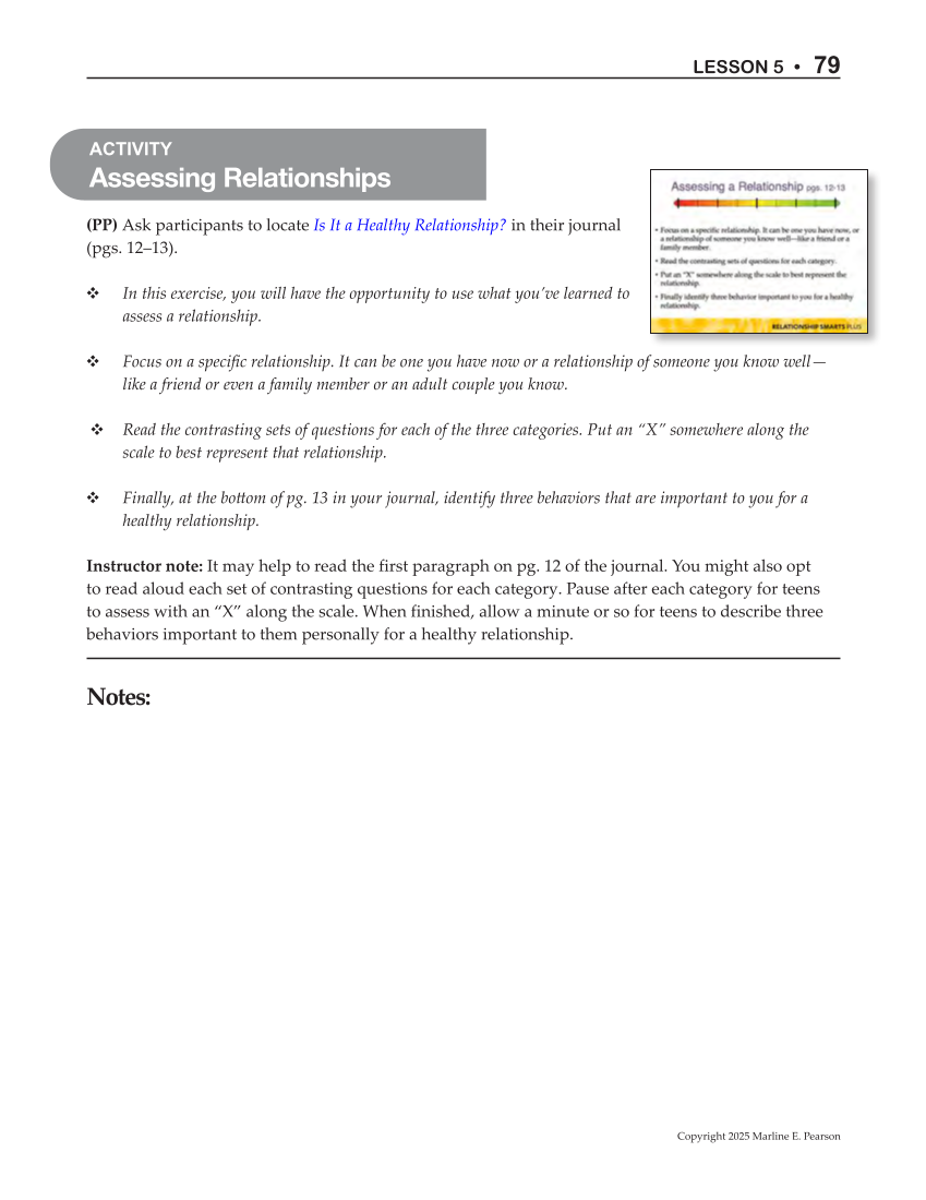 (PP) Ask participants to locate Is It a Healthy Relationship? in their journal