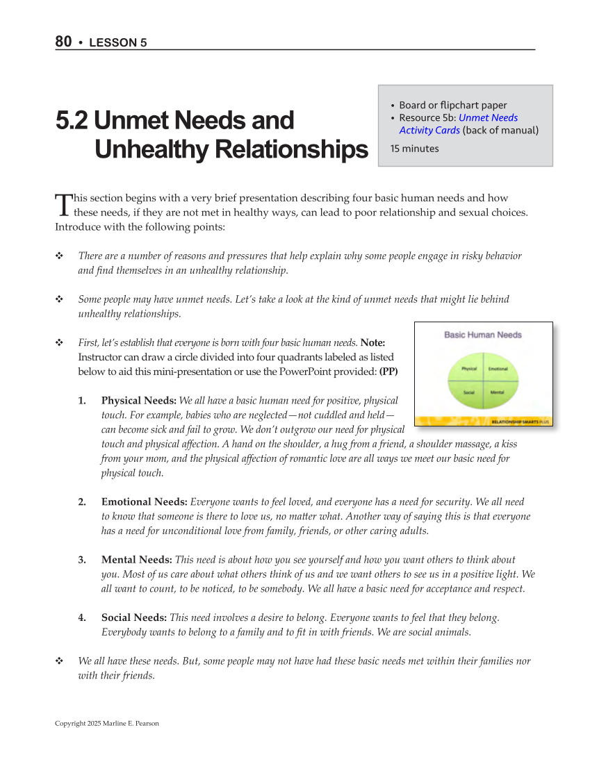 these needs, if they are not met in healthy ways, can lead to poor relationship and sexual choices.